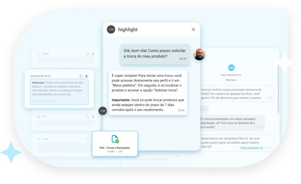 Contextualize a IA para responder dúvidas específicas do seu negócio respeitando o tom de voz da marca