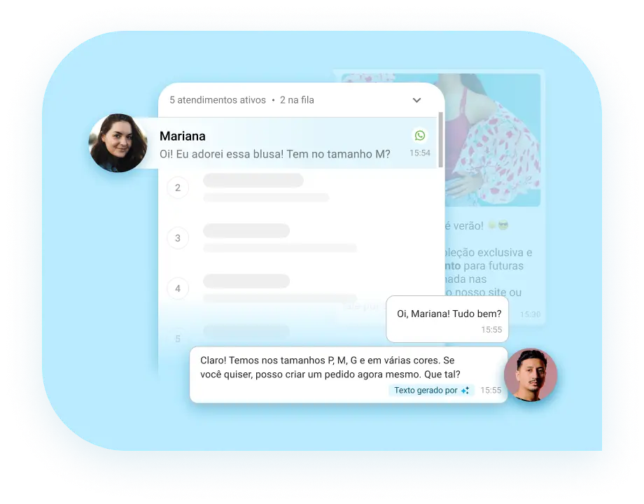 Com a IA Generativa seu negócio entrega a mensagem certa em menos tempo! O Copilot oferece sugestões de respostas aos agentes baseadas nos históricos de atendimento do seu negócio.