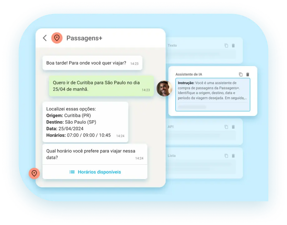 Os fluxos automatizados com IA generativa identificam as necessidades do consumidor, interpretando sua intenção e buscando a melhor solução para guiar o cliente na jornada de compra.